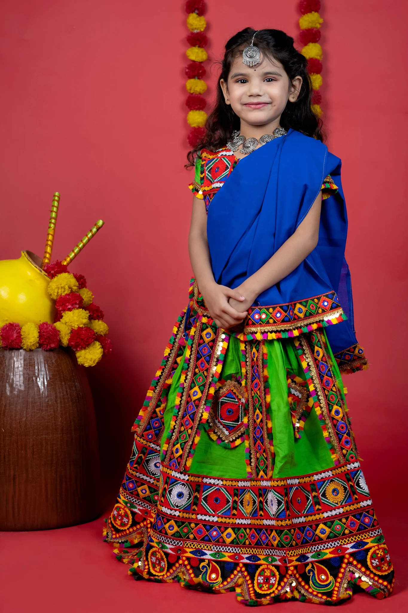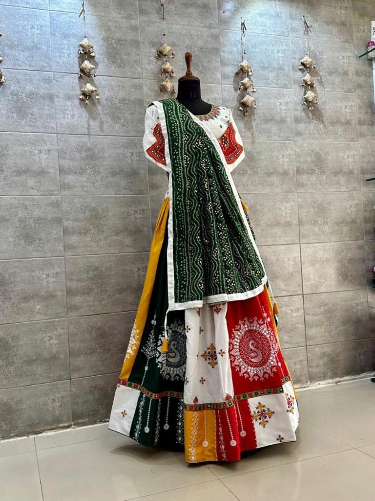 White Jacquard Cotton Embroiderd Traditional Chaniya Choli for Navratri